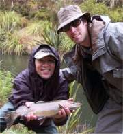 I had a splendid time with Craig Farrar, and have already recommended him to several of my fishing friends, and will certainly give them your web address if my enthusiasm turns out to be contagious. Thanks for your help in setting it up. I attach a couple of not terribly good pix--unfortunately the biggest fish I caught (a very nice 3.5 pound rainbow from the headwaters of the Rangitaiki) had saved enough energy to make a last strong jump just as I was taking him out of the net, so the smaller one in the picture will have to do.